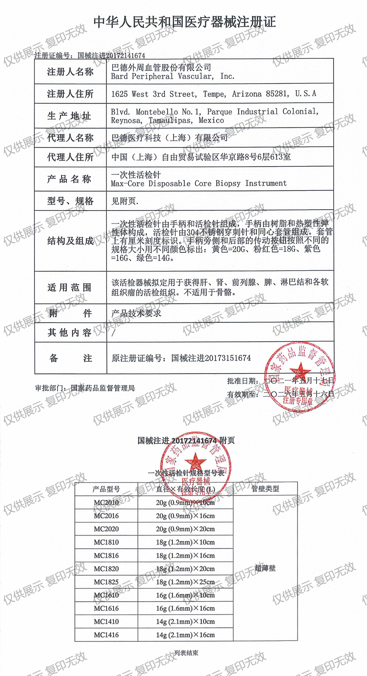 注冊證編號:國械注進(jìn)20172141674
