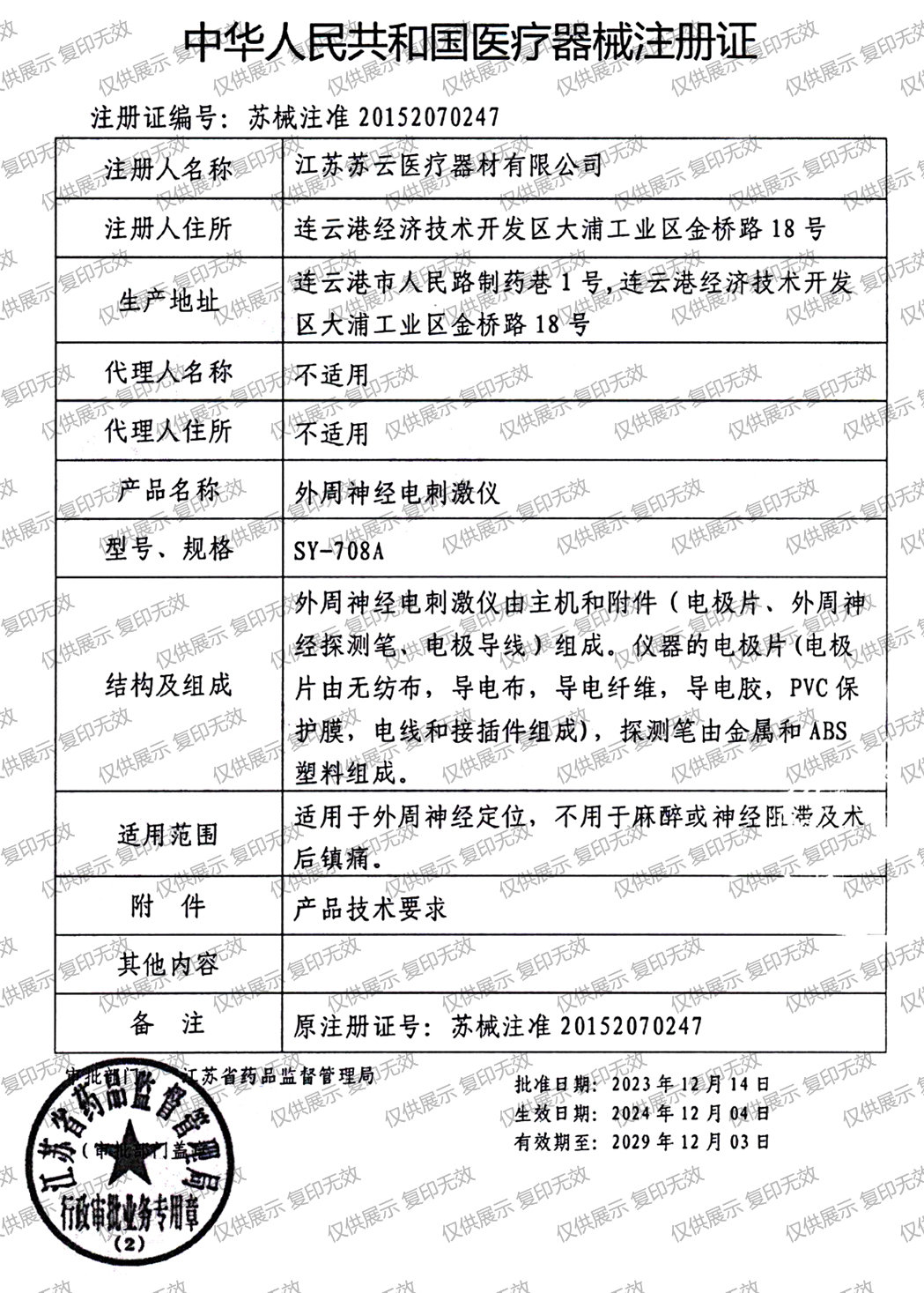 1.蘇云SY-708A外周神經(jīng)電刺激儀可能含有禁忌內(nèi)容或者注意事項,具體詳見說明書。